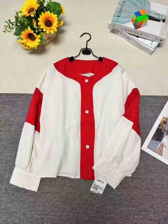 高级感别致红白撞色灯笼袖网红款雪纺衬衫,单款单色,品质好,有独立包装带吊牌,码数S- XL,数量380件左右,全清7.8元秒,分货➕1。。 货号:24862