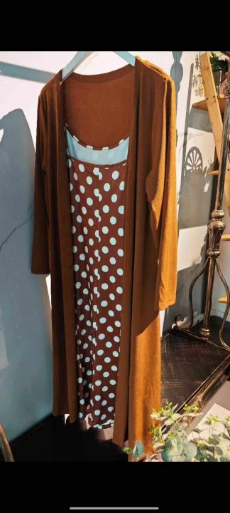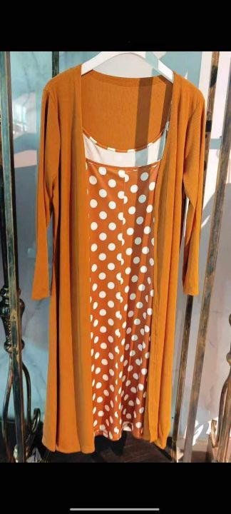 女装运动休闲套装和橙色波点吊带连衣裙两件套套装,两...