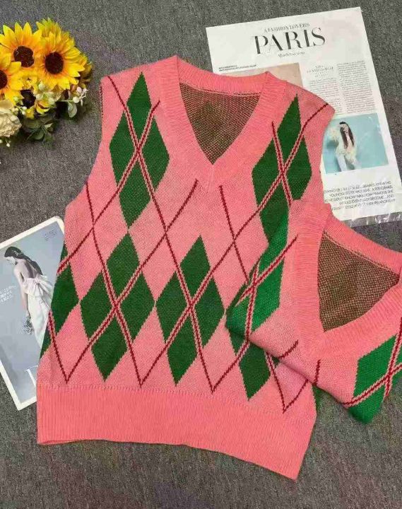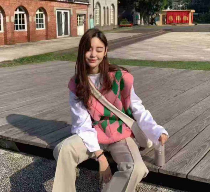 秋冬新款宽松百搭慵懒风提花V领叠穿套头毛衣马甲,独...