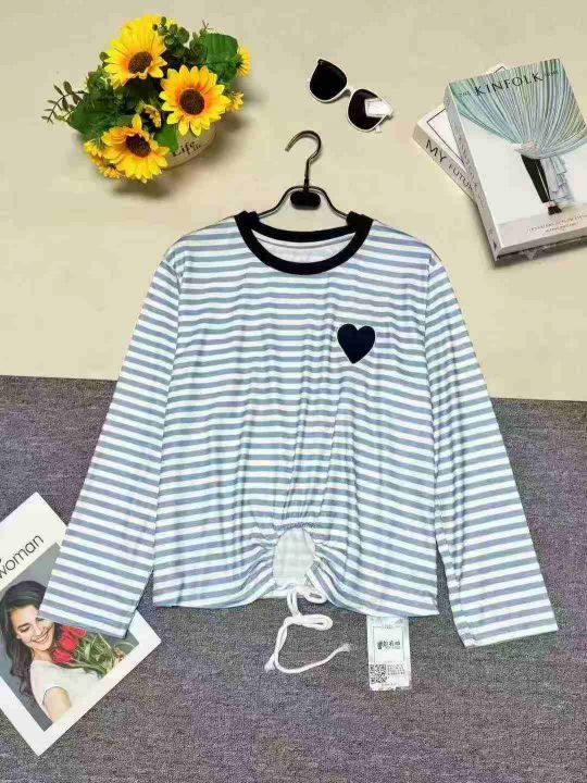 夏季透气撞色条纹长袖T恤女宽松薄款纯棉上衣,图片款,品质好可入实体店,有独立包装带吊牌,码数S-XL,数量700件左右,全清5.8元秒。分货➕1