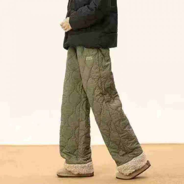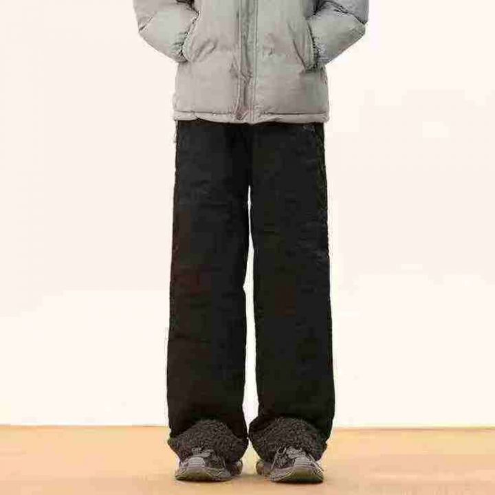 防寒休闲羊羔保暖裤男女冬季潮宽松葫芦纹防水直筒裤加...