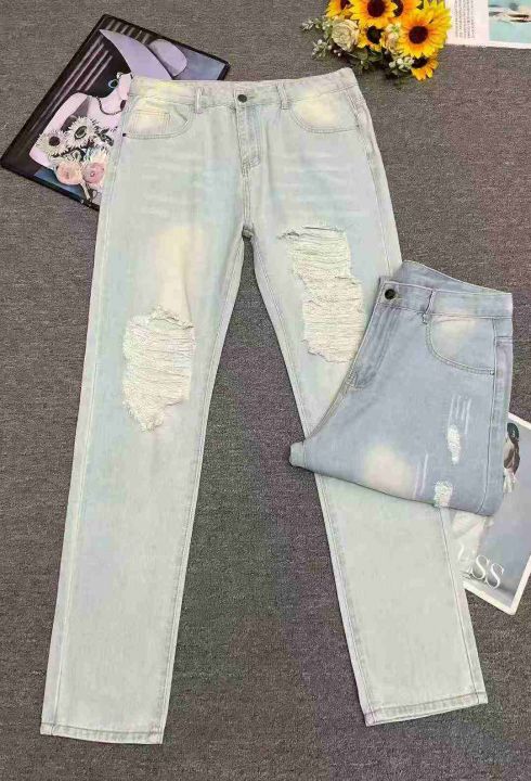 品牌外贸原单宽松百搭破洞美式复古牛仔长裤,独立包装带吊牌,码数28--40码,图片款,480件左右,全清9.9元超低价秒杀!分货加一!