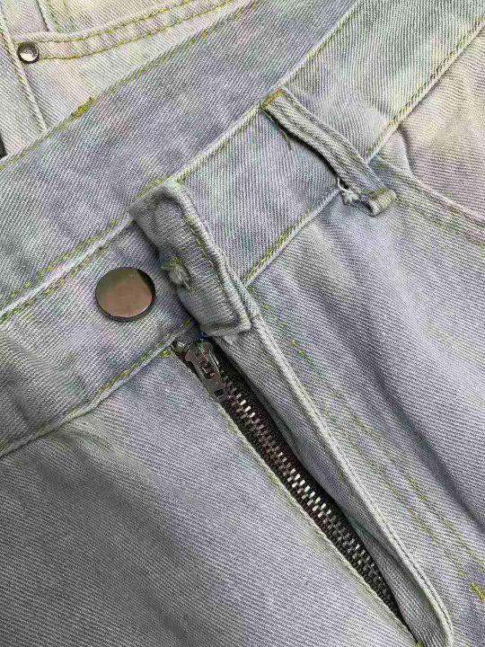 品牌外贸原单宽松百搭破洞美式复古牛仔长裤,独立包装...