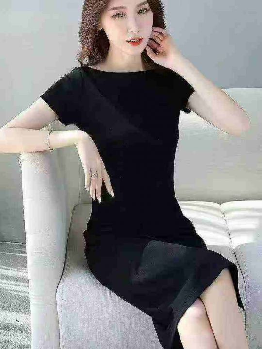 黑色显瘦连衣裙女长款修身气质包臀裙子,均码,水袋装,10件一绑,货品干净,100条,全清5.8不分货