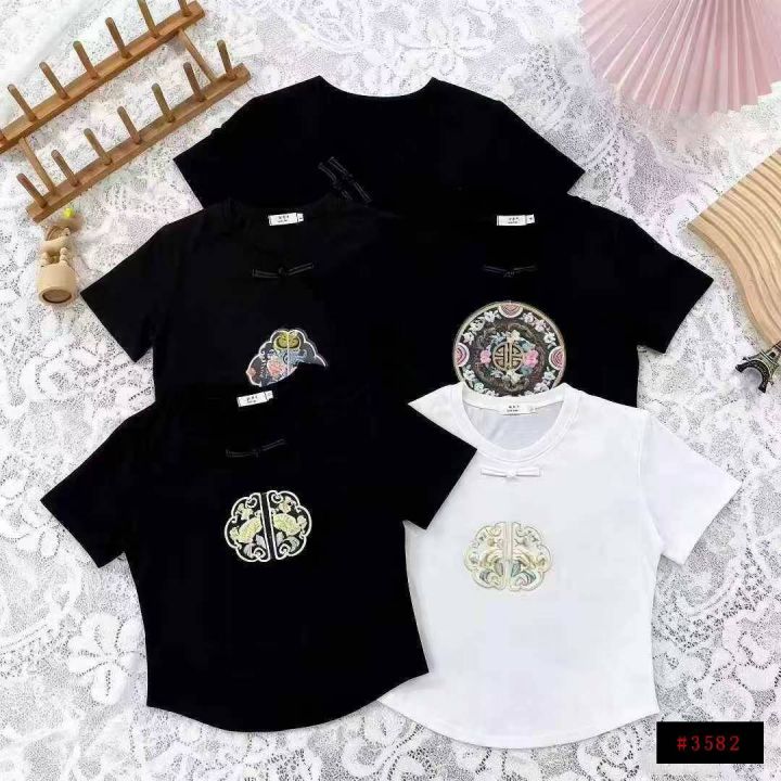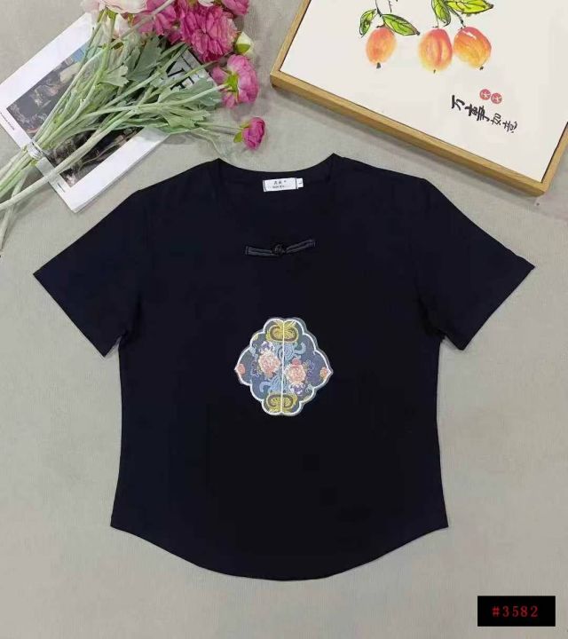 1625件国风重工刺绣中式盘扣拉架棉短袖T恤女,以黑色为主 ,尺码:M~2XL,面料亲肤透气,全部精品独立包装,整款微杂,全清价6.8元,分货加1。@_@