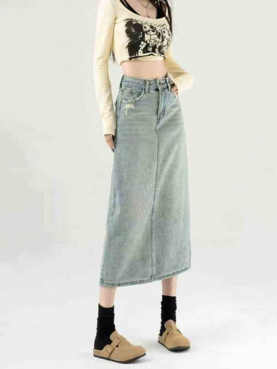 春夏新款洗水棉网红爆款牛仔半身长裙,独立包装带吊牌...