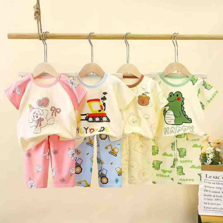 有些裤子七分裤 有些裤子是短裤 上衣都是短袖,长袖长裤的极少 男女童都有