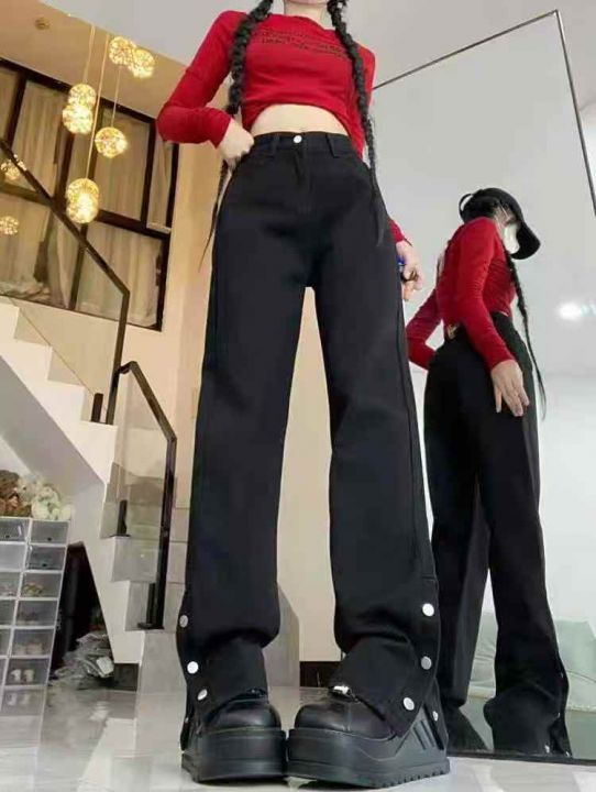 黑色宽松百搭排扣设计款洗水棉牛仔直筒烟管裤,独立包装带吊牌,码数S--2XL码,680件,全清8.9元超低价秒杀!分货加一!