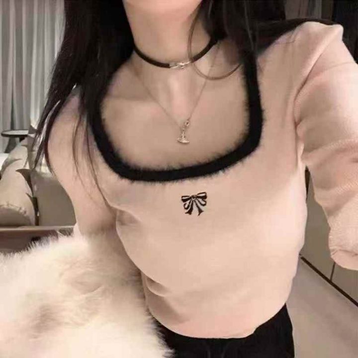 早秋新款小香风撞色刺绣减龄百搭拼接水貂毛设计款套头...