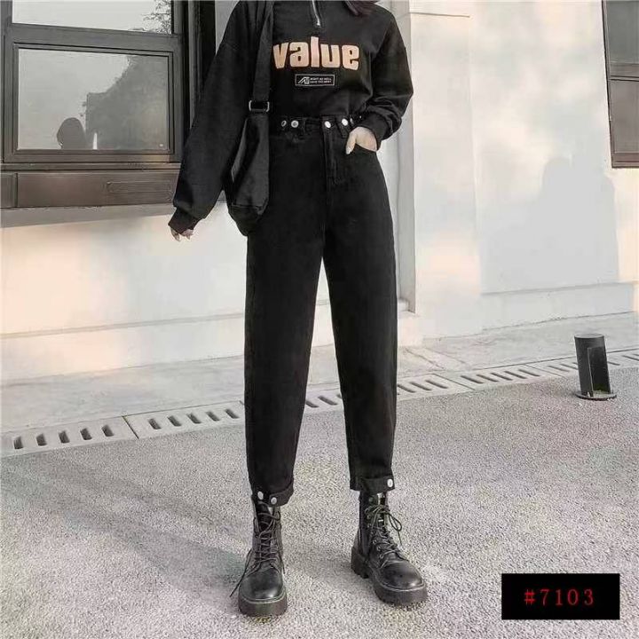 秋冬新款洗水棉宽松百搭牛仔老爹哈伦裤,独立包装带吊...