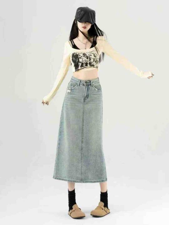 春夏新款洗水棉网红爆款牛仔半身长裙,独立包装带吊牌...