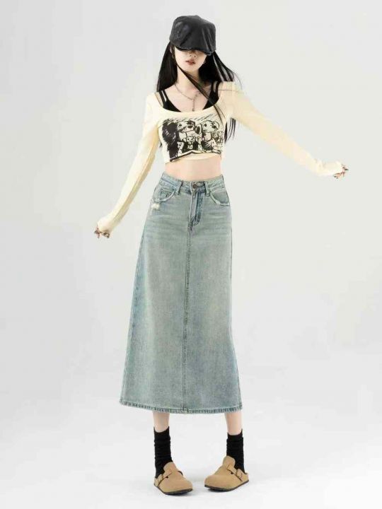 春夏新款洗水棉网红爆款牛仔半身长裙,独立包装带吊牌...