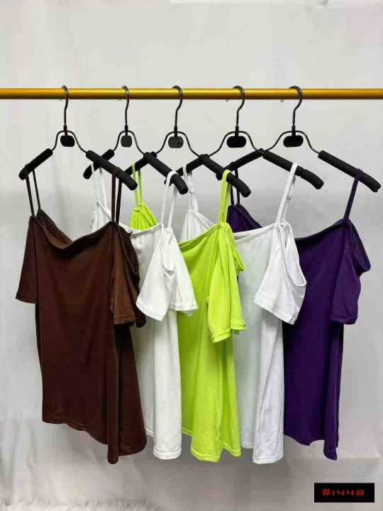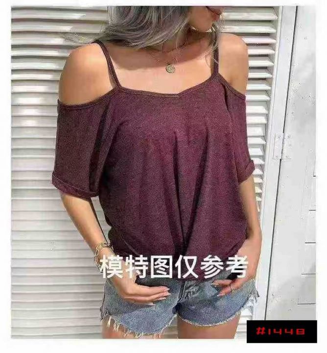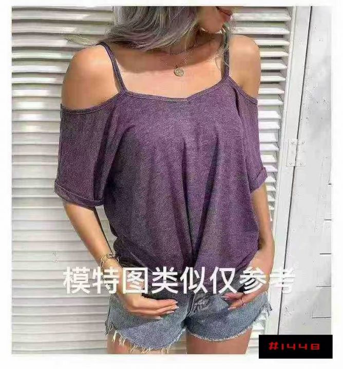 欧美时尚大版型女装纯色露肩短袖T恤,整款多色,数量 900 件,码数 S-XL。 独立包装带吊牌。腾仓库亏本处理全清 3.8@_@