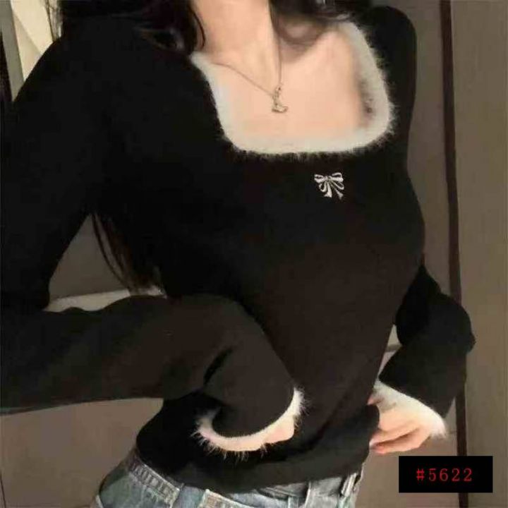 早秋新款小香风撞色刺绣减龄百搭拼接水貂毛设计款套头毛衣,独立包装,黑白色为主,均码面料软糯舒适弹力大,900件,全清6.9元超低价秒杀!分货加一!@_@