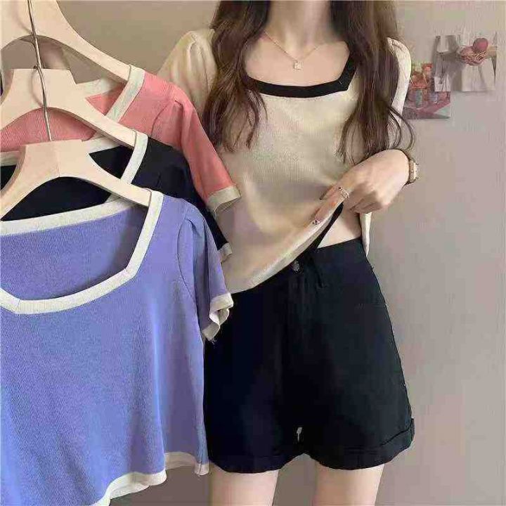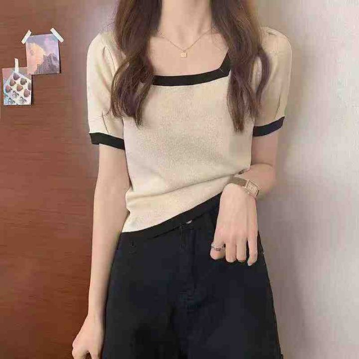 夏季新款大码宽松弹力显瘦方领冰丝针织短袖,独立包装,均码面料柔软舒适弹力,宽松版,单款4色米色黑色多,4600件,全清5.9元超低价秒杀!分货加一!