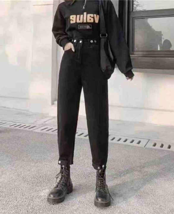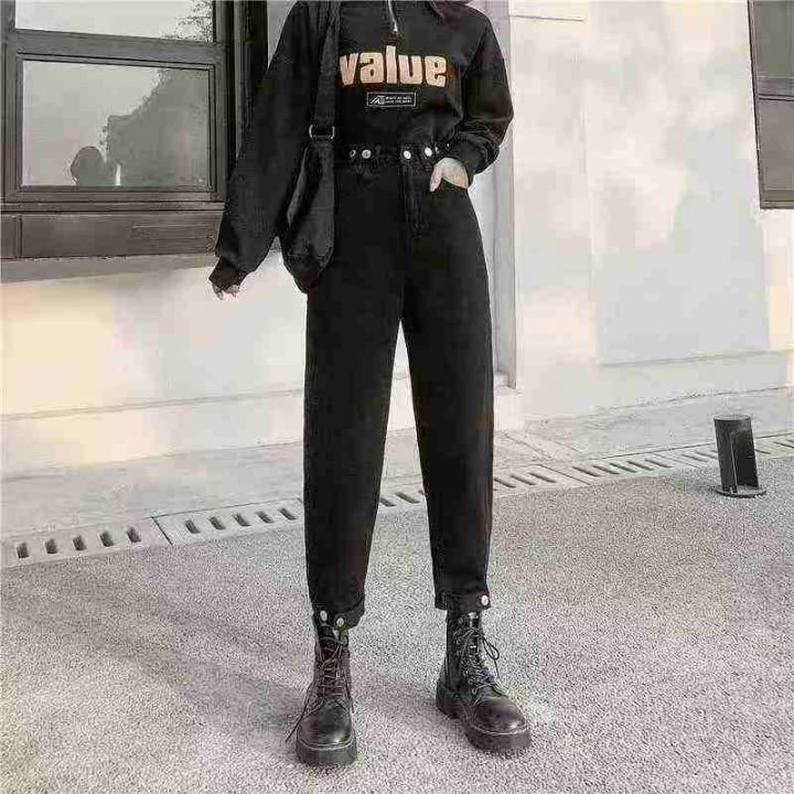 秋冬新款洗水棉宽松百搭牛仔老爹哈伦裤,独立包装带吊...