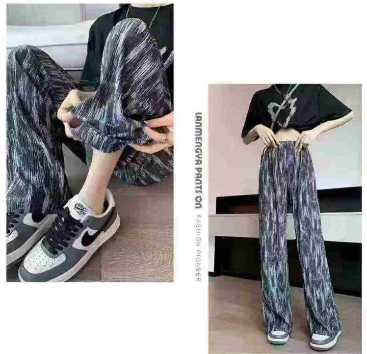 冰凉感直筒冰丝阔腿裤女夏季薄款休闲防蚊显瘦垂感扎染裤子,独立包装,码数M-2XL(2-5)数量496条,3码裤长100厘米,货号0915#54