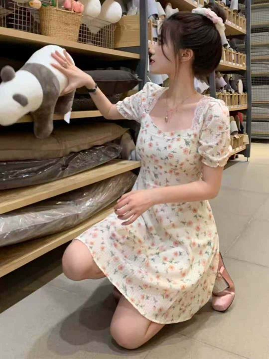 品牌原单宽松百搭法式复古碎花小清新连衣裙,独立包装...