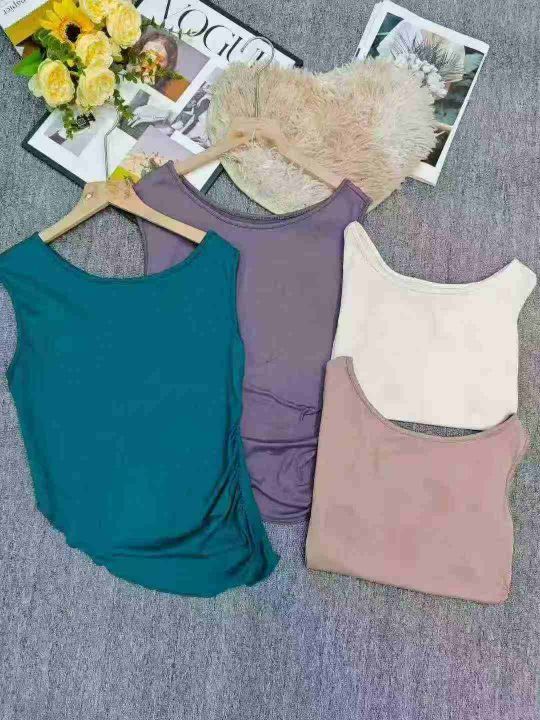 工厂回收750件纯色褶皱设计感背心上衣,码数S-XL。面料柔软有弹性,褶皱花边有设计感,全部独立包装,分货➕0.5