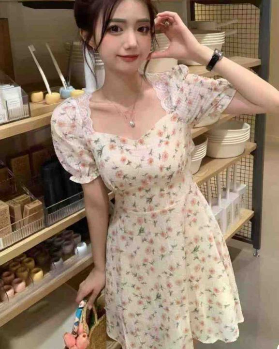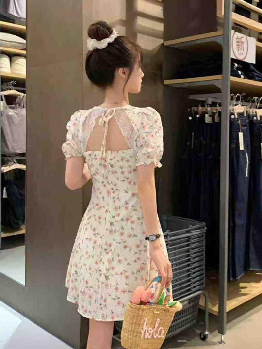 品牌原单宽松百搭法式复古碎花小清新连衣裙,独立包装...