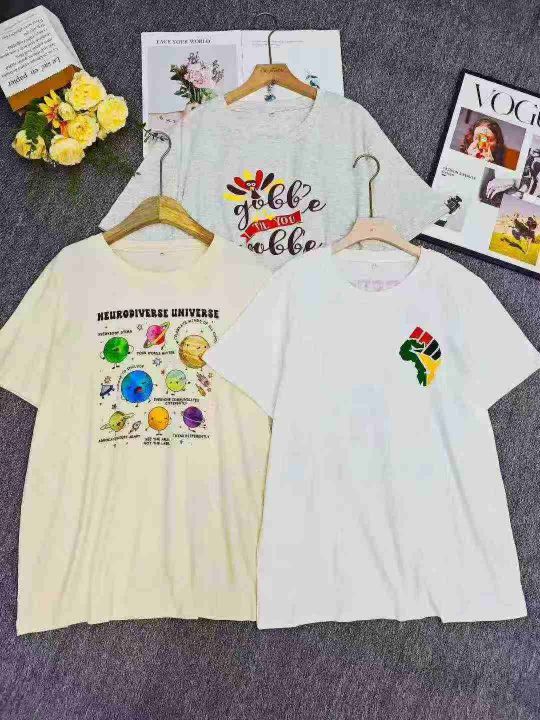 工厂回收1394件宽松慵懒风卡通印花高级棉质短袖T恤,码数S-5XL。版型质量好,宽松落肩显瘦,有独立包装。反季节超低价清仓!分货➕0.5