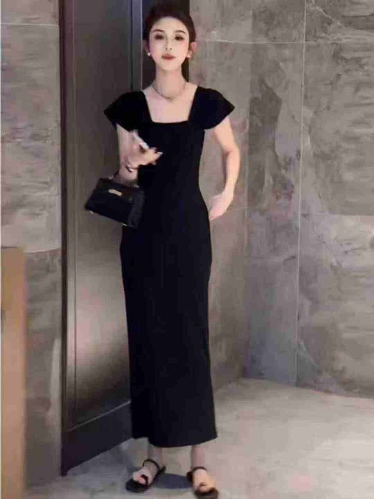 天猫在售款500件左右高品质夏季小个子撞色条纹方领短袖连衣裙,码数S-L,单款两色,高弹力,独立包装带吊牌