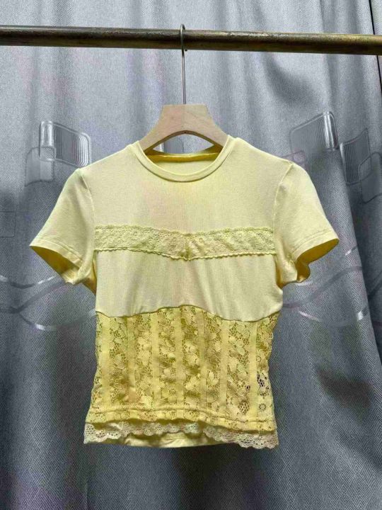 甜辣芭莉 蕾丝拼接短袖T恤女设计感辣妹性感纯欲修身显瘦短款上衣,独立包装S _2xL码,棉的100件左右,全清4.8