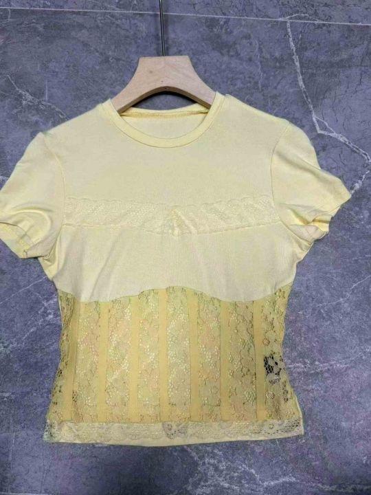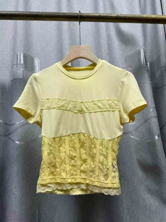 甜辣芭莉 蕾丝拼接短袖T恤女设计感辣妹性感纯欲修身显瘦短款上衣,独立包装S _2xL码,棉的100件左右,全清4.8。 货号:1323