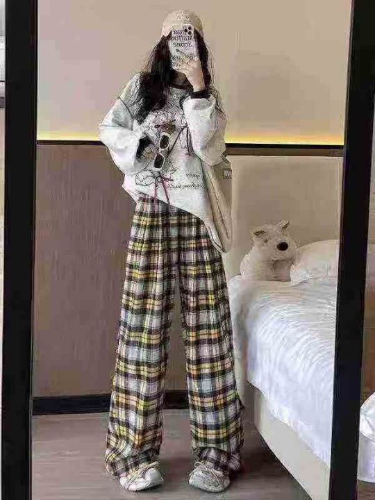 全清价6.9元气质薄绒直筒格子裤宽松显瘦高腰秋裤,独...