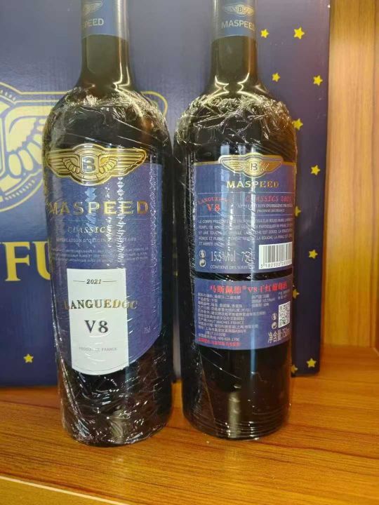 100大几十元一箱,酒质一级棒,超重重瓶,15.5度,21年,郎格多克产区,法国进口马斯佩德v8干红酒,等级AOP,一箱24斤,有个几百箱