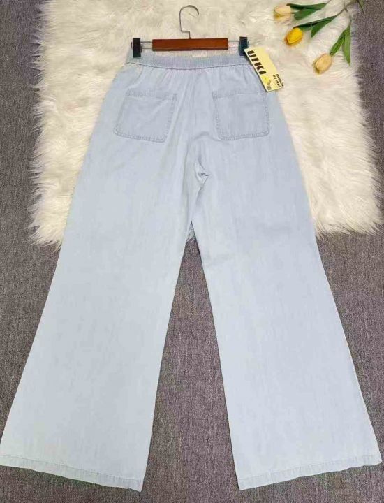 品牌UIKI女士棉麻裤腿加长牛仔宽松阔腿裤300条,黑白...
