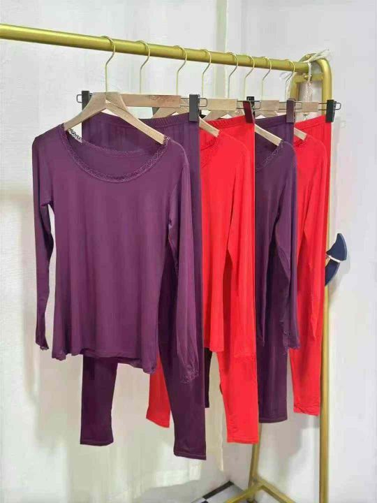 莫代尔棉女士秋衣秋裤薄款紧身纯色打底冬季美体修身保暖内衣套装,数量1200套,均码,独立包装,全清7.9元,分货8.5元。 货号:1323