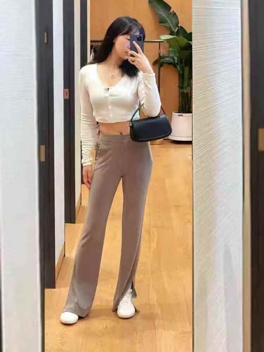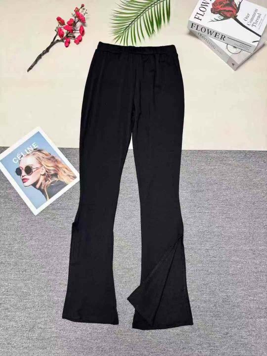 洋气显瘦微喇叭开衩裤子,整款三色,数量:371套,码数:S-2XL,品质好,有独立包装。