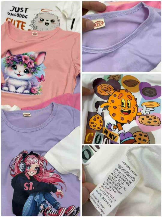 全清2.98元,18800件\'童装短袖T恤,卡通彩色图案童装短袖T恤,花型大同小异一系列\'独立包装,码数90-160,分货200起3.5元。 货号:1323