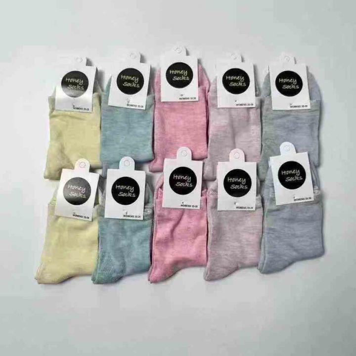 糖果色纯棉女袜3600双,单款多色均码适穿35~42脚,一双一纸卡,10双/袋。