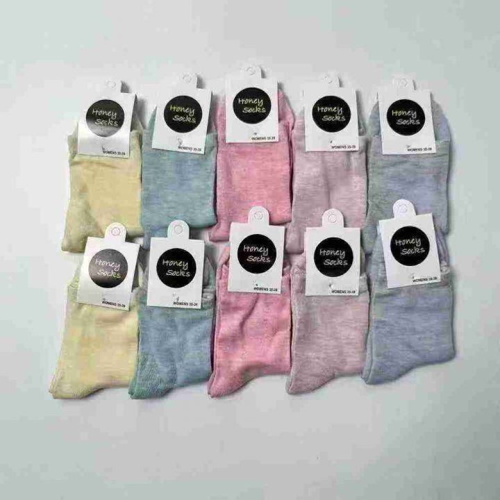 糖果色纯棉女袜3600双,单款多色均码适穿35~42脚,一双一纸卡,10双/袋。