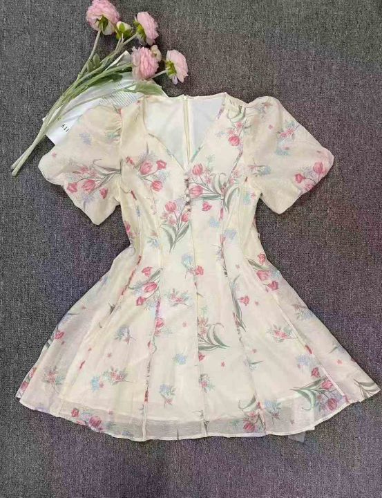1300多件法式碎花v领高级感御姐风气质收腰泡泡袖连衣...