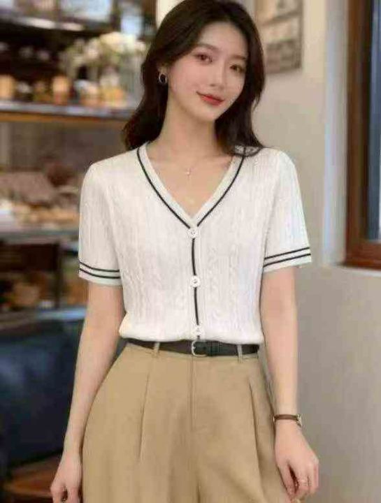 捡漏款,夏季新款冰丝小香风时尚气质休闲减龄百搭针织T桖,独立包装,均码...