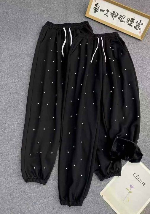 韩系重工镶钻满天星加绒束脚卫裤990件,全清10.8,分货11.8,