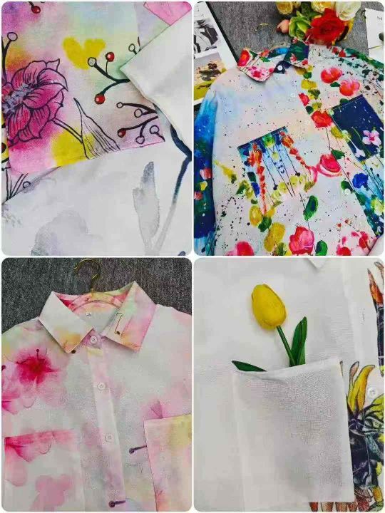 工厂回收357件外贸女士宽松大版印花长袖衬衫,码数S-2XL。版型质量好,颜色丰富鲜艳,货品新,有独立包装。分货➕1