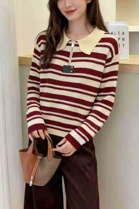 秋冬新款撞色条纹半拉链针织套头毛衣,独立包装,均码面料柔软舒适弹力大,1053件,全清7.9元超低价秒杀!分货加一!。 货号:1323