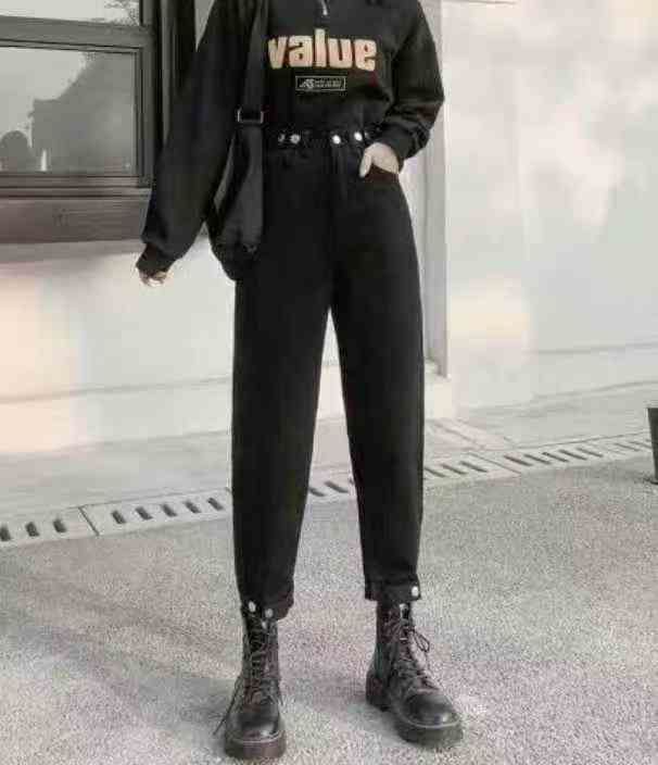 秋冬新款洗水棉宽松百搭牛仔老爹哈伦裤,独立包装带吊...
