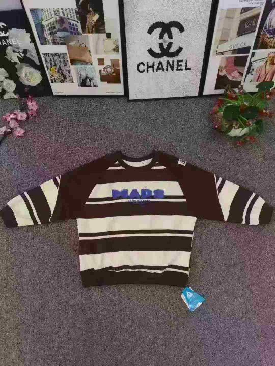 品牌童装2025新款条纹卫衣 数量400件左右 尺码110--160 整款两个色 手袖带点小设计 独立包装带吊牌 货品干净整洁质佳!