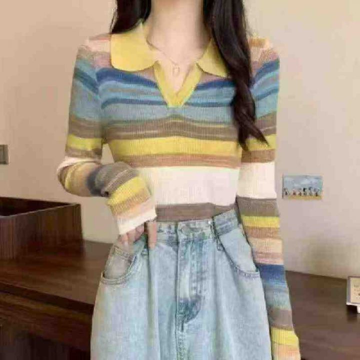 秋季新款POLO领撞色彩虹条纹微胖MM设计感时尚宽松长袖套头毛衣羊毛衫,独立包装,均码宽松款面料软糯Q弹,1800件,全清8.9元超低价秒杀!分货加一!。 货号:24862