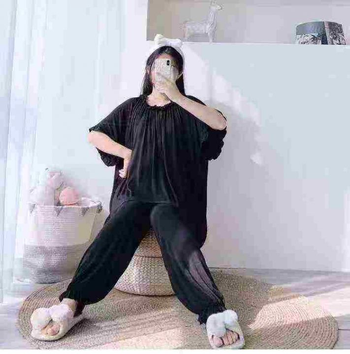 120套加大码木耳边睡衣女春夏短袖长裤套装宽松家居服...