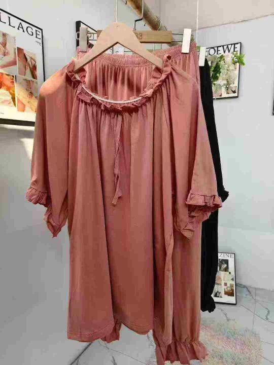 120套加大码木耳边睡衣女春夏短袖长裤套装宽松家居服,红色多,码数2-6,独立包装,全清7.8分货+1