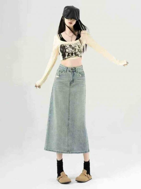 春夏新款洗水棉网红爆款牛仔半身长裙,独立包装带吊牌...