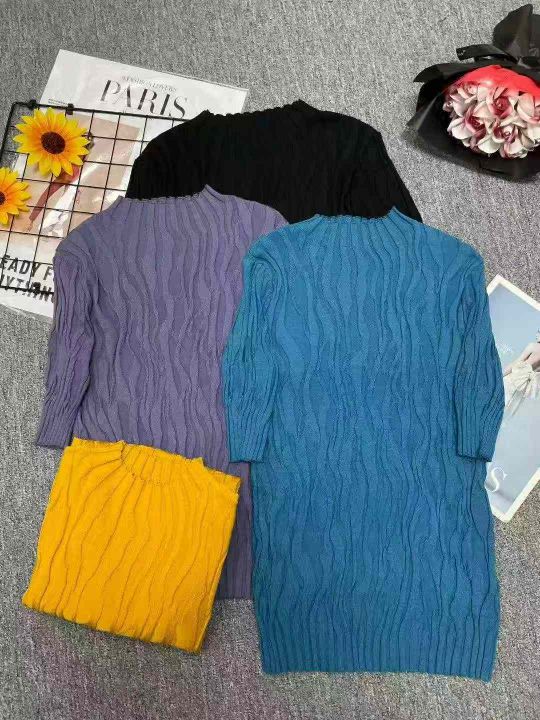 早秋新款时尚韩版弹力修身显瘦褶皱纹理设计打底外穿针织衫,独立包装,均码...