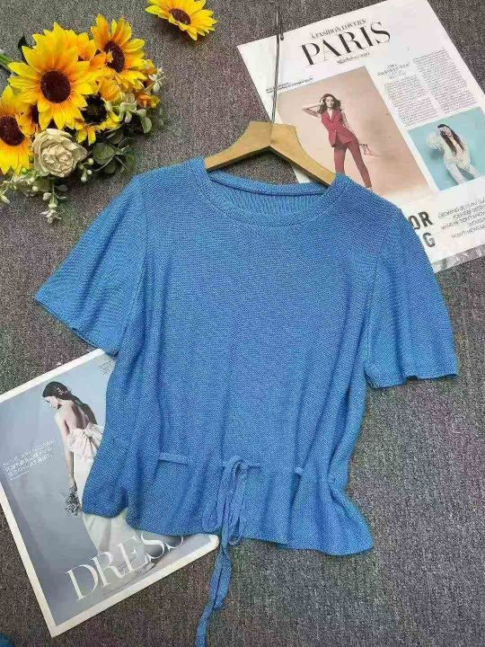 夏季新款韩系设计款收腰显瘦冰麻针织短袖,独立包装,均码面料柔软舒适宽松...
