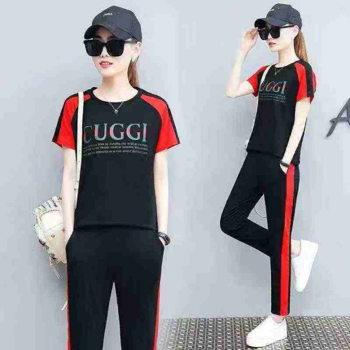 短袖长裤运动套装女夏时尚纯棉宽松跑步服休闲两件套,数量110套,码数ml3xl4xl,独立包装,全清8.8元